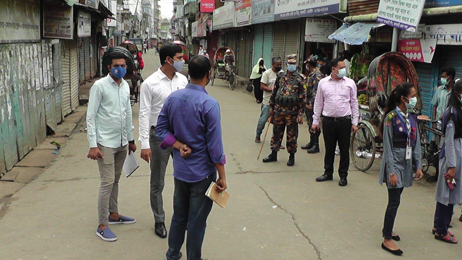 বৃহস্পতিবার সকাল থেকে ঝালকাঠিতে কঠোর লকডাউনের প্রথম দিনে গণপরিবহন, শপিংমল ও মার্কেটগুলো বন্ধ রয়েছে। তবে ঈদ উৎসবের মত লকডাউনের মধ্যেও রাস্তায় ও বাজারে মানুষের ভিড় রয়েছে। স্বাস্থ্যবিধি মানছেন না অনেকেই। শহরে রিক্সা ব্যতীত সকল যানচলাচল বন্ধ রয়েছে। গাদাগাদি করে বাজারে কেনাকাটা করছেন জনসাধারণ। এতে করোনা সংক্রমণ বেড়ে যাওয়ার আশঙ্কা করছেন চিকিৎসকরা। লকডাউনে জনসাধারণকে সচেতন করতে জেলা প্রশাসন ও জেলা পুলিশের উদ্যোগে শহরে অভিযান চালানো হয়েছে। পুলিশের অভিযানের সময় লোকজনের যাতায়াত কমে যায়। শহর ফাঁকা হয়ে যায়। অনেকেই অভিযানের টের পেয়ে দোকানপাট বন্ধ করে দেন। পুনঃরায় অবস্থা দেখে আবার দোকান খোলে। প্রশাসনের সাথে জনসাধারনের এ যেন এক লুকোচুরি খেলা।পুলিশ সুপার ফাতিয়া ইয়াসমিন বলেন, আমরা নতুন করে সরকারের নির্দেশনা বাস্তবায়নে সর্বাত্মক কাজ করে যাচ্ছি। নির্দেশনা না মানলে ব্যবস্থা নেওয়া হবে। রাস্তায় পণ্যবাহী যানবাহন ও রিকশা ছাড়া কোন যানবাহন চলতে দেওয়া হচ্ছে না। আইন না মানলে যানবাহন আটক করা হবে বলেন তিনি।ঝালকাঠি জেলা প্রশসাক কার্যালয়ের ডেপুটি নেজারত কালেক্টর (এনডিসি) আহমেদ হাসান বলেন, ঝালকাঠি জেলা সদরসহ ৪উপজেলায় পুলিশ, আর্মড ব্যটালিয়ন, বিজিবি, (RAB) সেনাবাহিনী নিয়ে গঠিত পৃথক টিম মাঠে কাজ করছে। জনসাধারণ যাতে সরকার ঘোষিত লকডাউন বাস্তবায়ন করে পৃরোপুরি স্বাভাবিক জীবনে ফিরতে পারে আমরা সর্বদা সেই চেষ্টাই করছি।